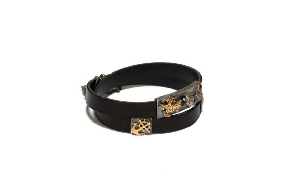 Siyah Deri 0,15 ct. Safir Taş 14 Ayar Altın Gümüş